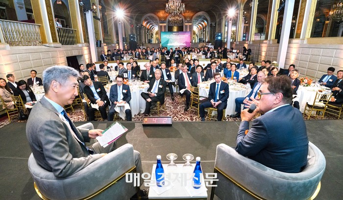 누리엘 루비니 뉴욕대 교수(오른쪽)와 샌더 허 KFS 공동의장(찰스뱅크크레디트 대표)이 15일(현지시간) 미국 뉴욕 더플라자 호텔에서 열린 ‘2025 뉴욕 글로벌금융리더포럼’에서 ‘미국 경제와 미래’를 주제로 대담을 하고 있다. [뉴욕특별취재팀]