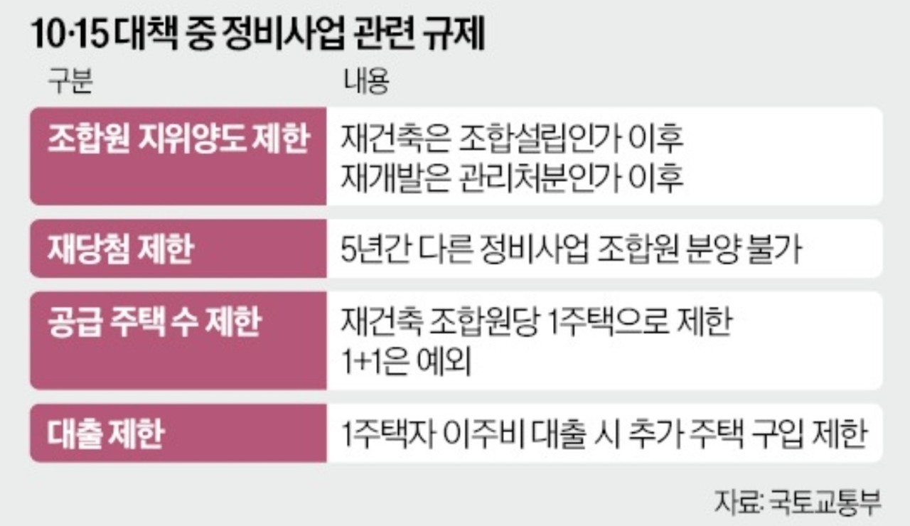 < 혼란 빠진 수도권 정비사업 > 정부의 '10·15 부동산 대책'으로 서울 내 214개 재건축·재개발 구역에서 조합원 지위양도가 제한되는 등 수도권 정비사업 현장이 큰 혼란에 빠졌다.