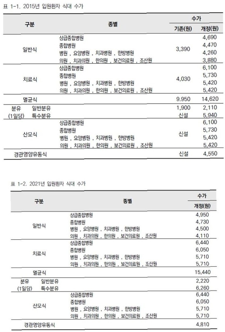 → 환자 식대는 보건복지부가 물가지수를 반영해 정하는데 올해는 5530원(상급 종합 병원 기준)이다.