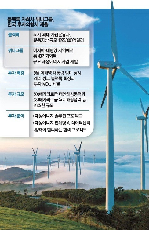 5. 세계 최대 자산 운용사인 블랙록과 산하 글로벌인프라스트럭처파트너스가 공동 소유한 뷔나그룹이 한국에 20조원에 달하는 투자를 단행합니다.