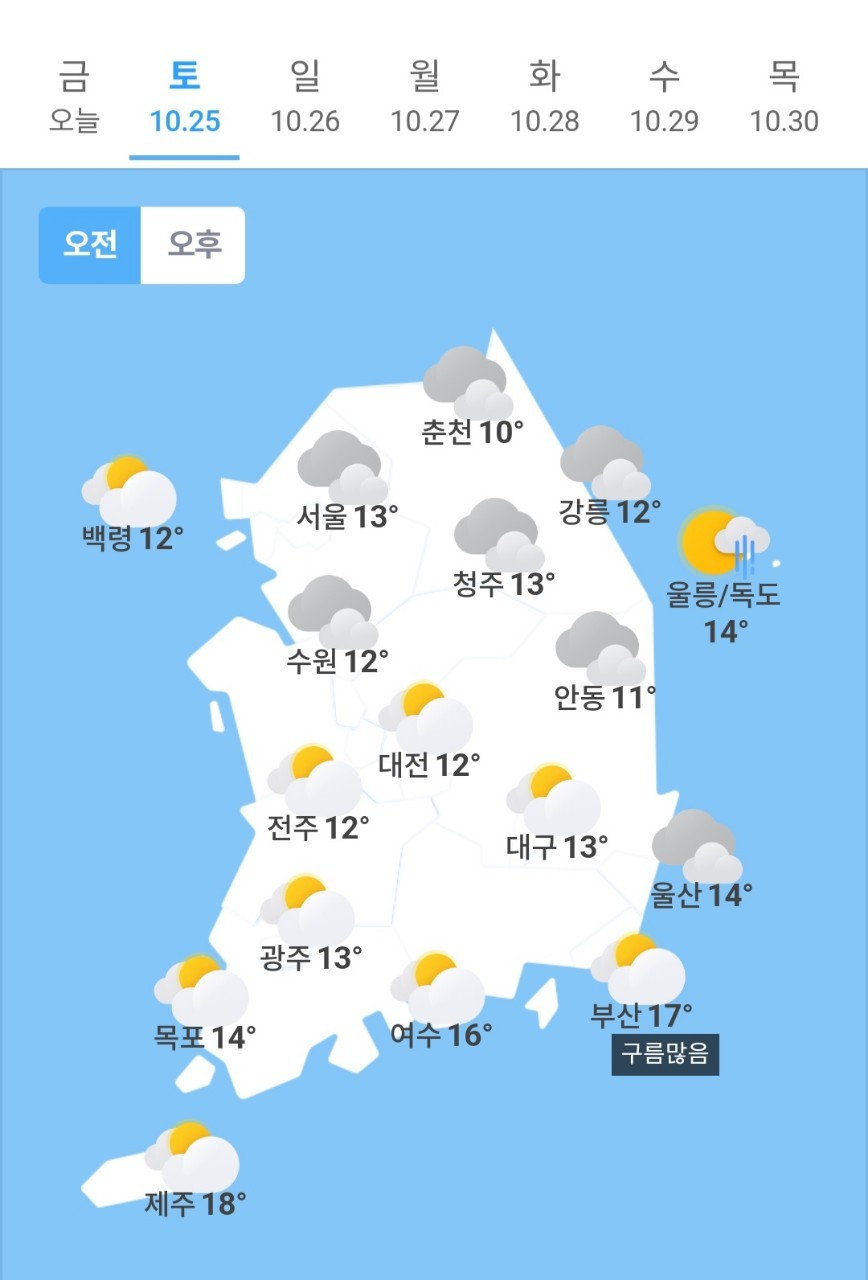 ✫부산(⛅)➠(☁️) 17℃ ~ 23℃