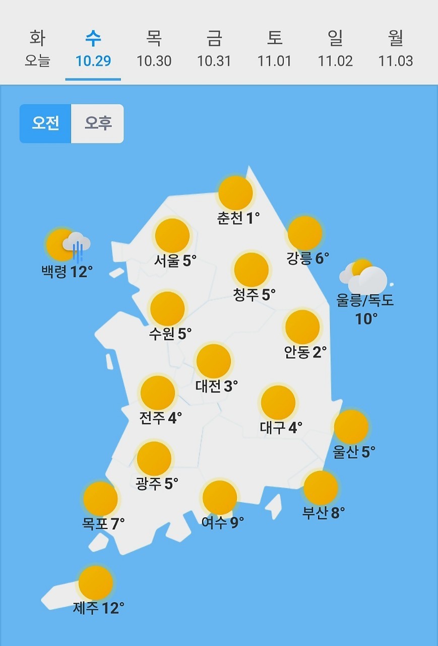 ✫청주(☀️)➠(☀️) 5℃ ~ 18℃
