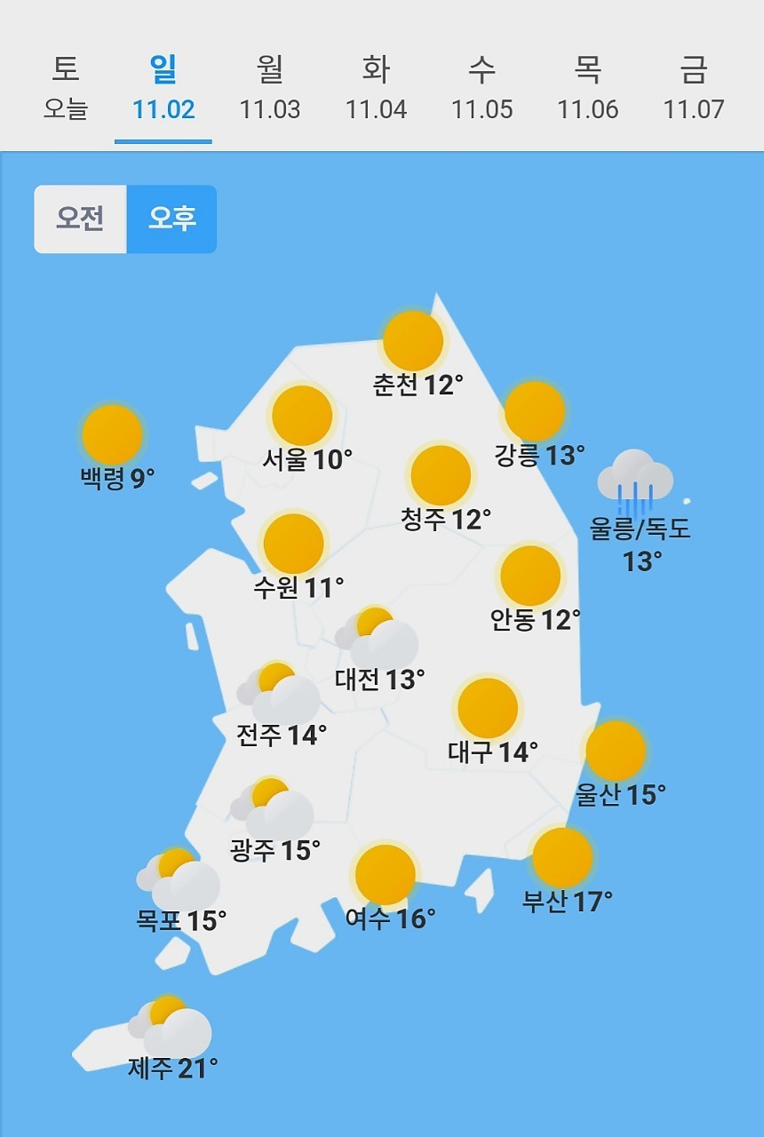 | 오늘의 날씨 🌞☔️☃️ , 2025년 11월 1일 토요일 (0) | 2025.11.01 |