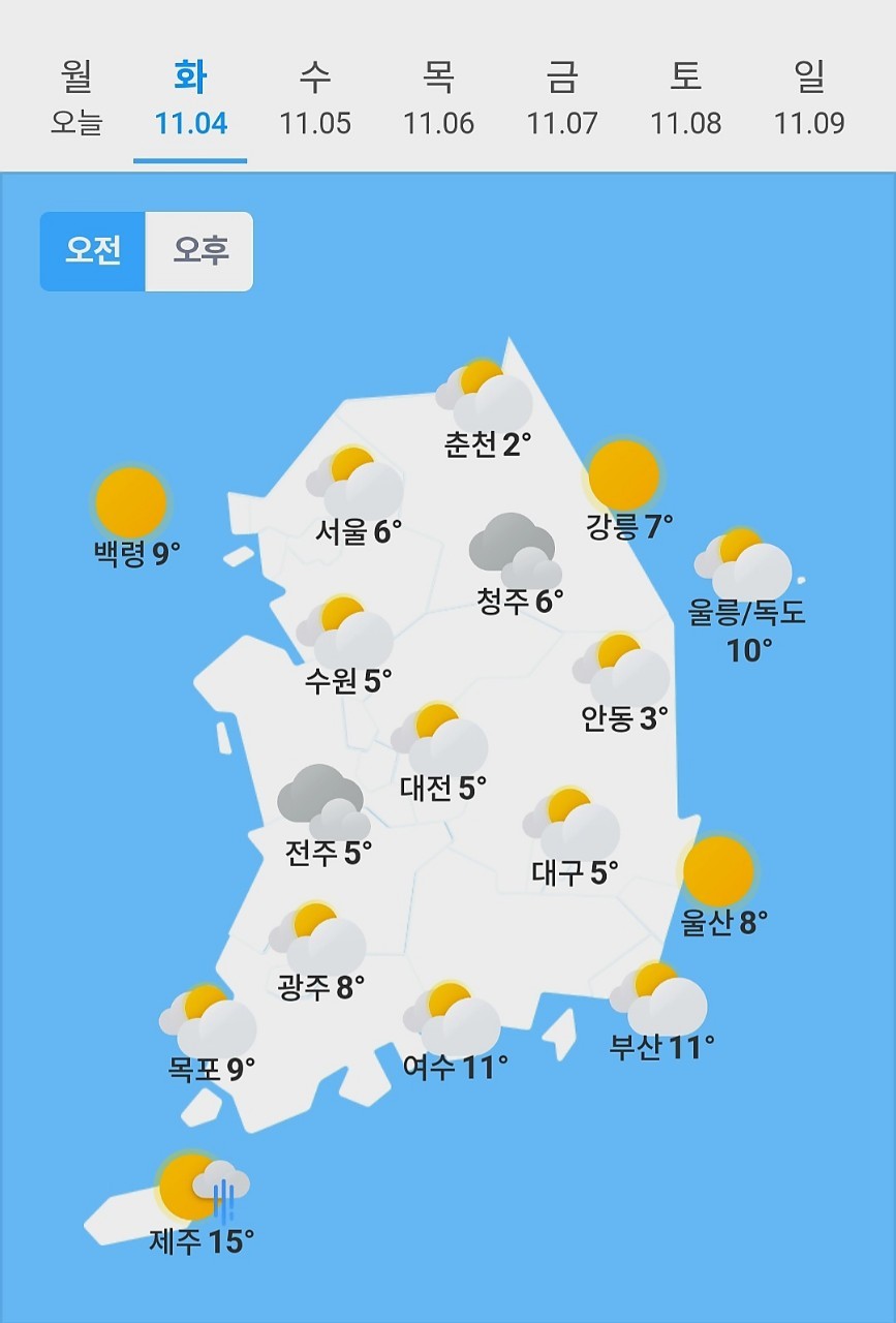 ✫인천(⛅)➠(☀️) 6℃ ~ 15℃