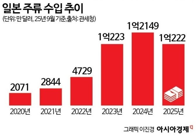 ◇日 주류 수입액 올해 사상 최대치 경신 전망