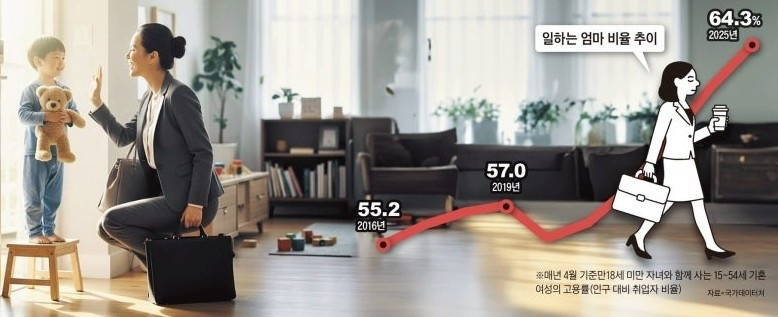 ◇옛말 돼가는 경단녀… 자녀 있는 기혼 여성 고용률 64% 역대 최고