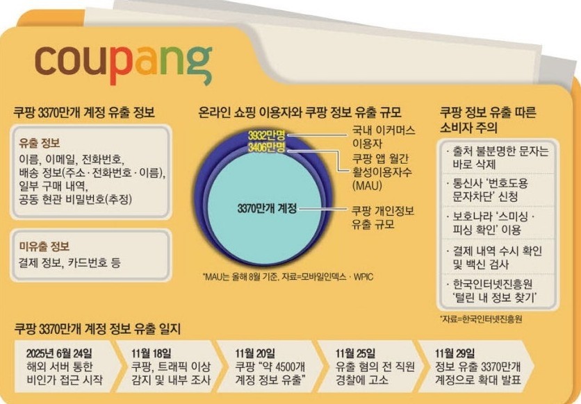 쿠팡의 월간 활성이용자(MAU)가 약 3400만명라는 점을 감안하면 사실상 모든 사용자 정보가 새나간 것입니다.