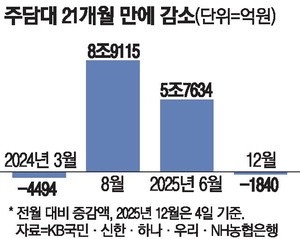 7. 주담대 21개월만에 감소 … 신용대출은 2년만 최대