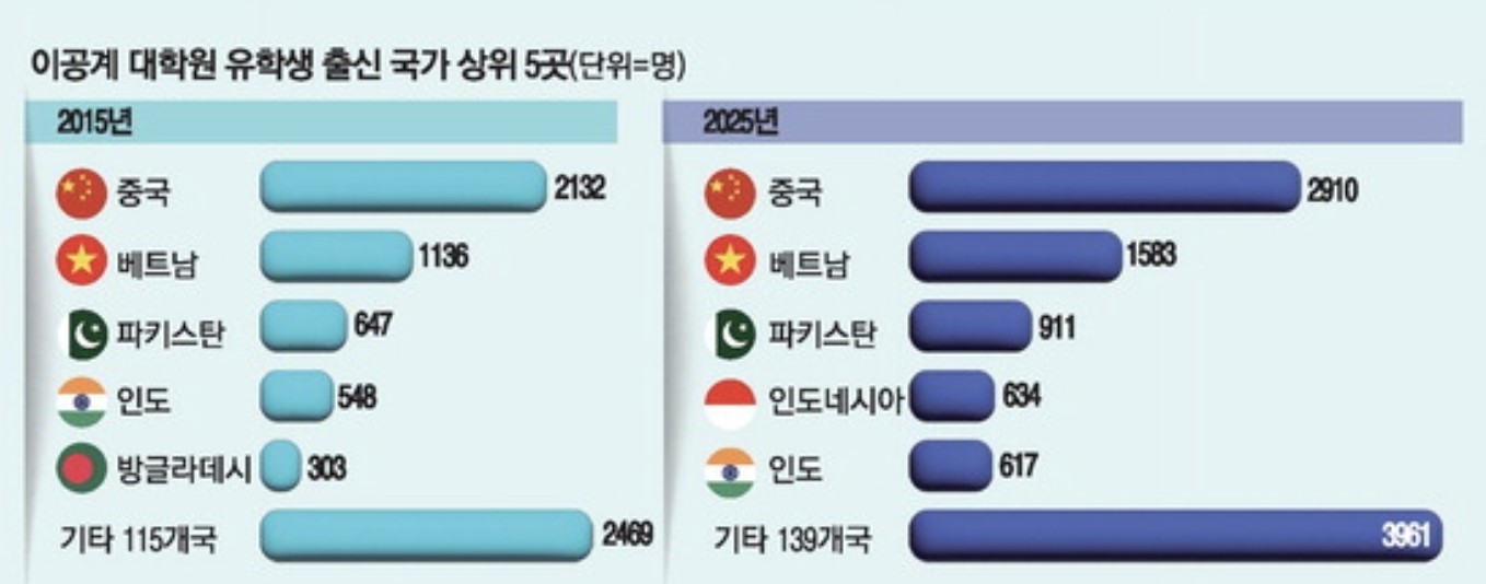 5. 국내 이공계열 대학원을 찾는 외국인 유학생이 빠르게 늘고 있습니다.
