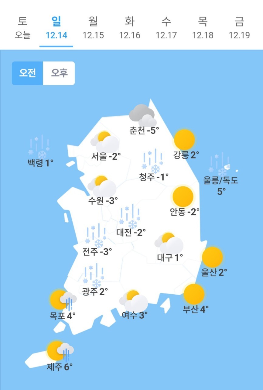 ✫대전(🌦/☃️)➠(⛅) -2℃ ~ 6℃