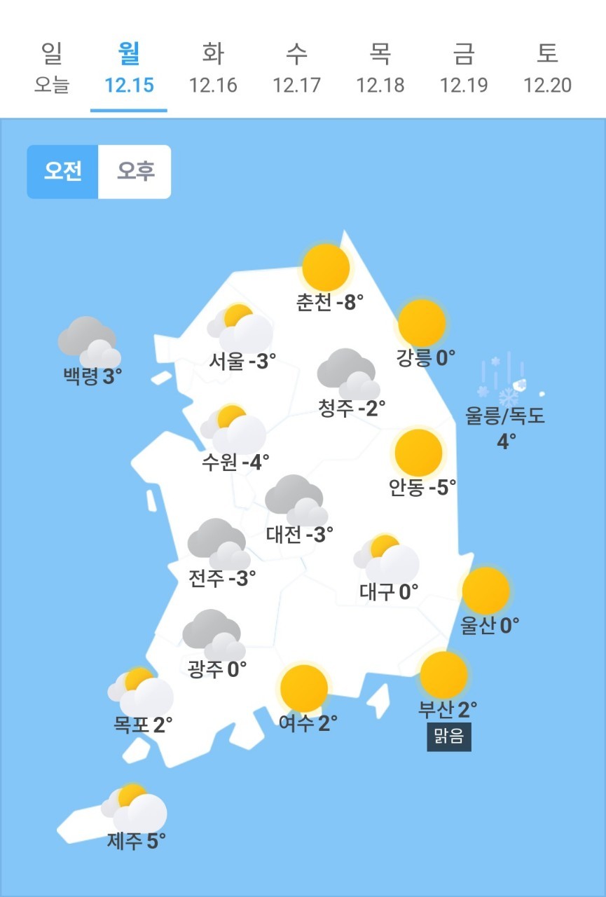 ✫춘천(☀️)➠(☁️) -8℃ ~ 4℃