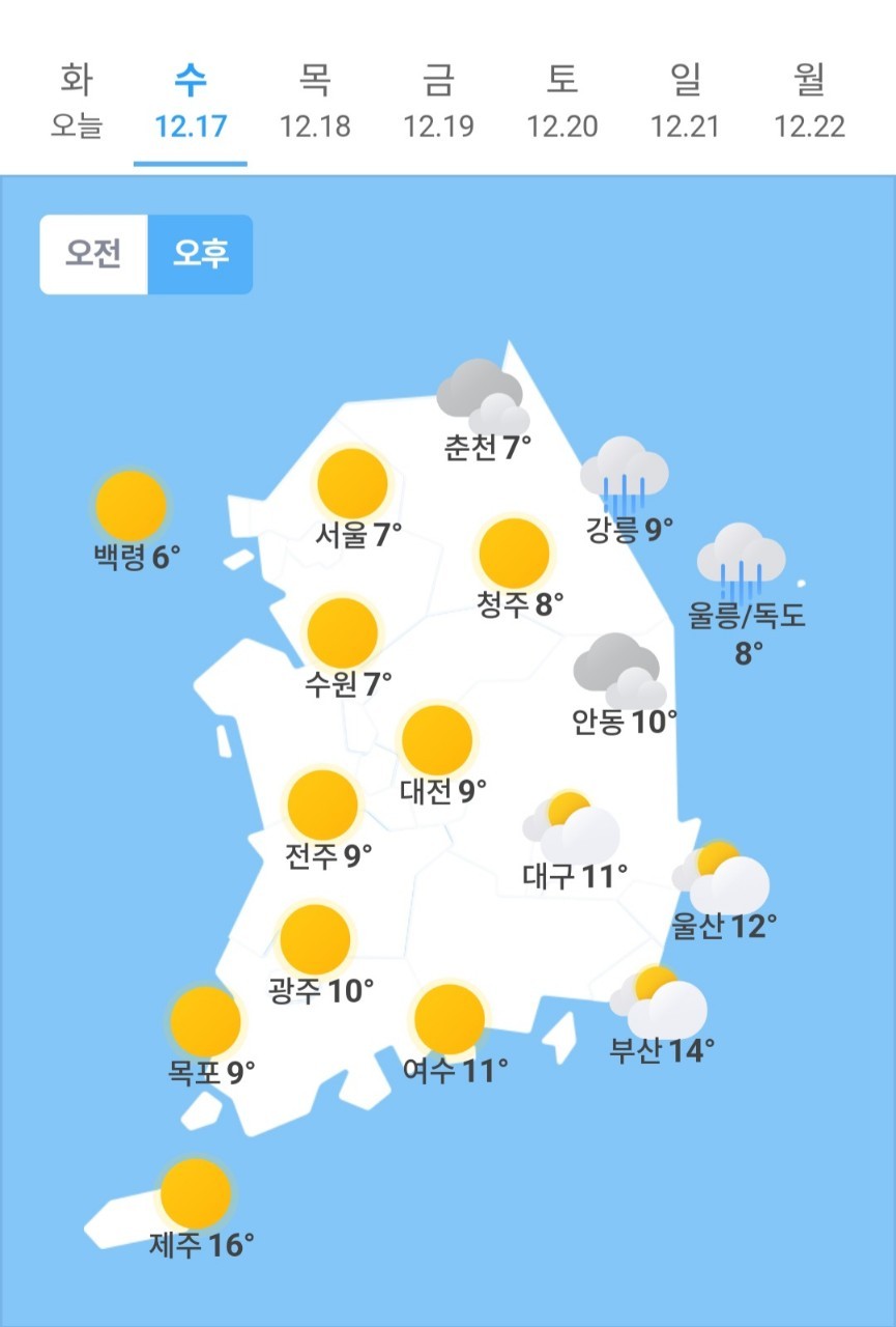 ✫수원(☁️)➠(☀️) 2℃ ~ 7℃