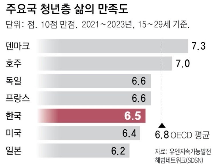 1. 한국 청년, ‘삶의 만족도’ 최하위? 미국, 일본보다 높다