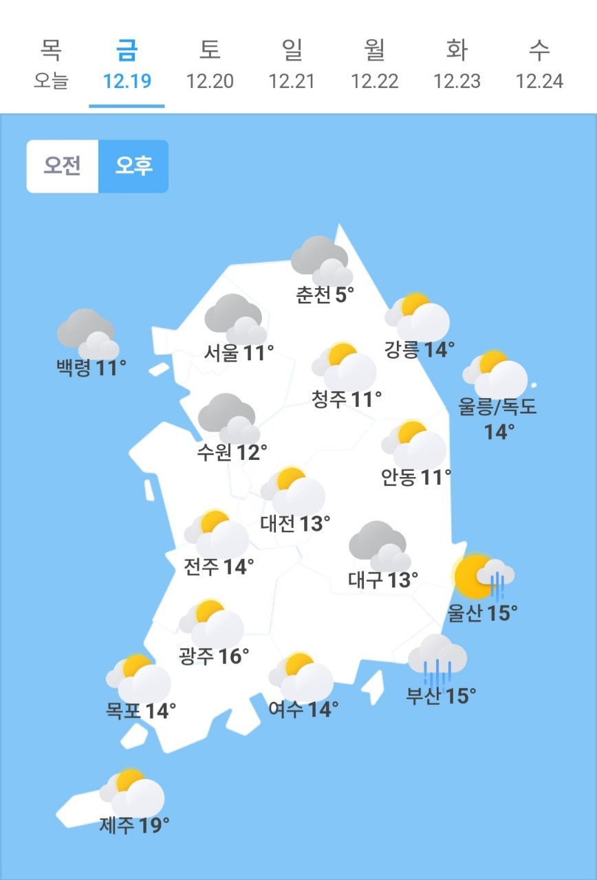 ✫청주(☁️)➠(⛅) 0℃ ~ 11℃