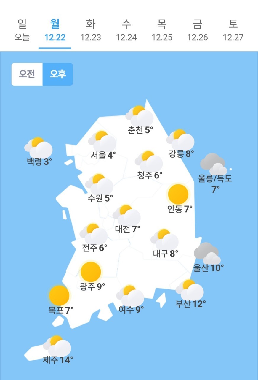 ✫부산(☀️)➠(⛅) 0℃ ~ 12℃