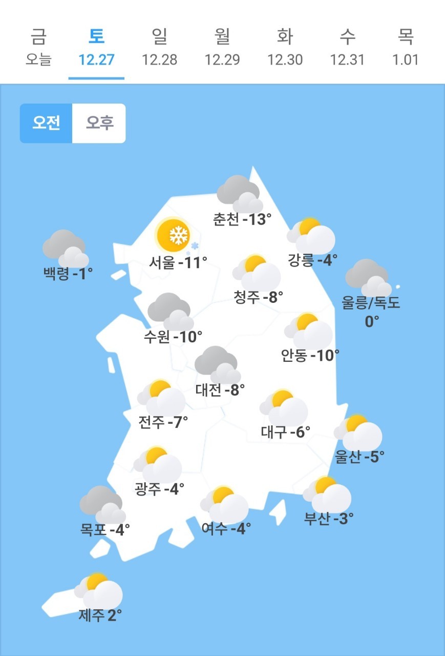 ✫서울(☁️)➠(☁️) -11℃ ~ 3℃