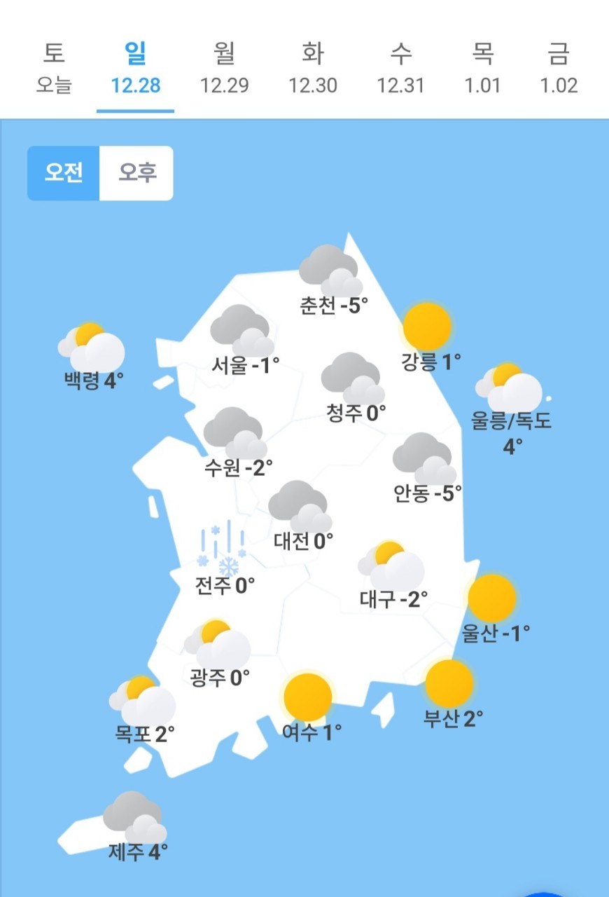 ✫춘천(☁️)➠(🌧/☃️) -5℃ ~ 2℃