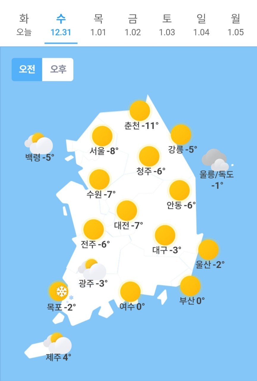 ✫부산(☀️)➠(☀️) 0℃ ~ 4℃