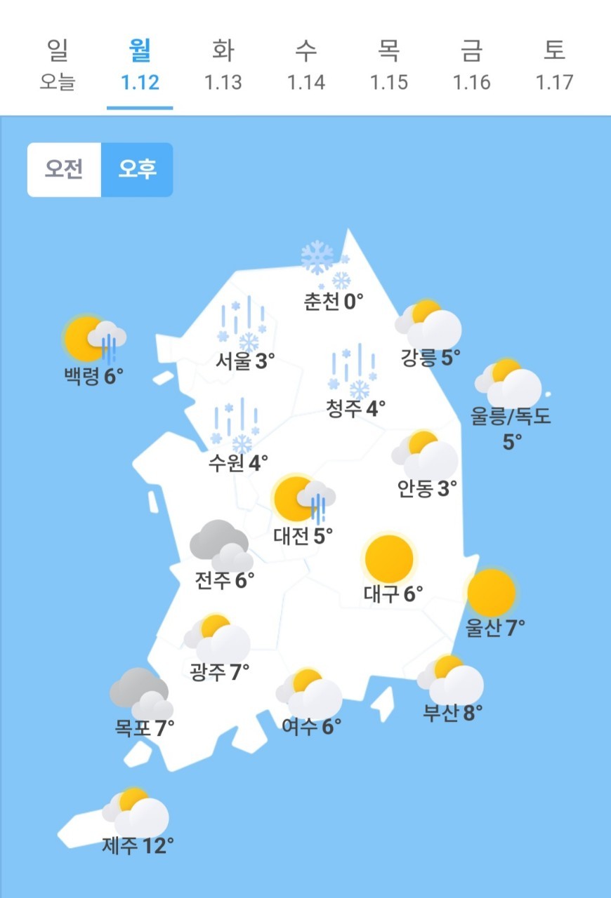 ✫청주(☁️)➠(🌦/☃️) -8℃~ 4℃