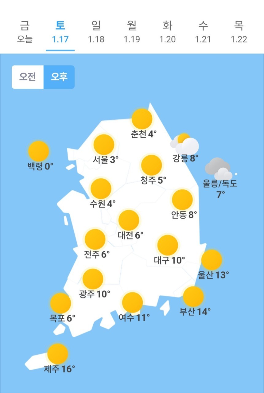 ✫울산(☀️)➠(☀️) 1℃ ~ 13℃