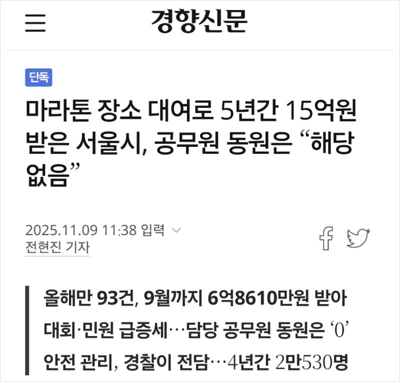 → 서울시, 더 이상 시민 불편 두고 볼 수 없다. 최근 마라톤 대회 열풍에 민원 늘자 제한 지침.