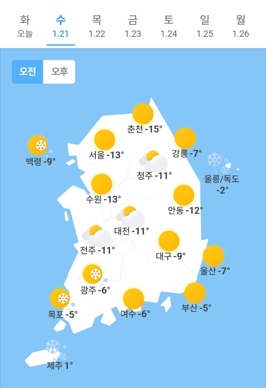 ✫울산(☀️)➠(☀️) -7℃ ~ 1℃