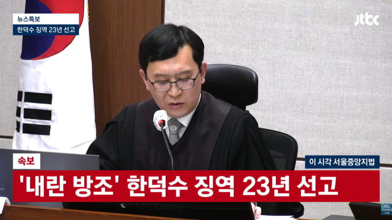 2. 윤석열 전 대통령의 불법 비상계엄에 동조한 혐의를 받은 한덕수 전 국무총리에게 1심 법원이 징역 23년의 중형을 선고했습니다.