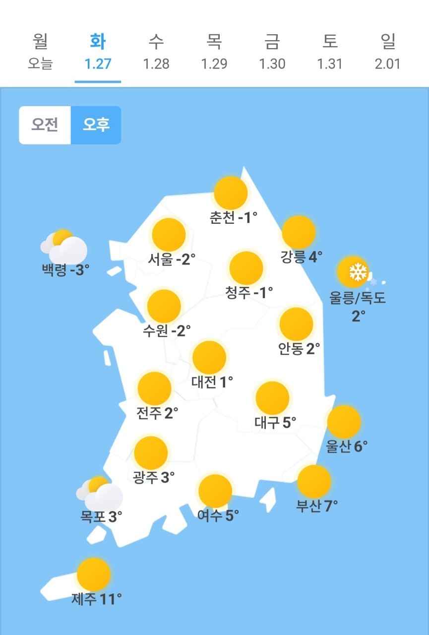✫부산(☀️)➠(☀️) -1℃ ~ 7℃
