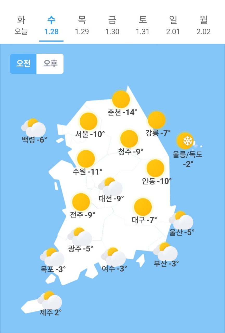 ✫청주(☀️)➠(☀️) -9℃ ~ -1℃