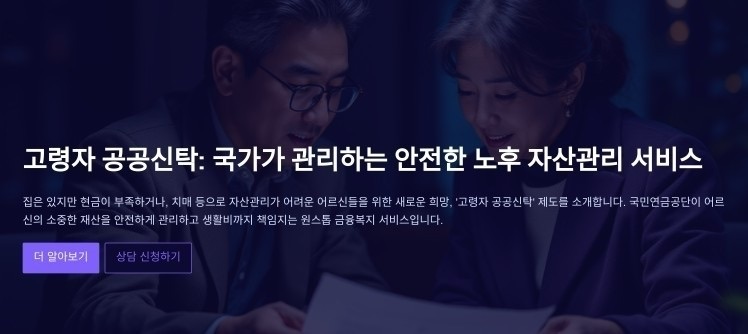 4. 국민연금공단이 치매를 앓는 고령층의 자산을 위탁 관리해주는 ‘공공신탁’과 관련해 전담 조직인 재산관리지원추진단을 꾸리고 올해 시범사업에 속도를 낼 방침입니다.