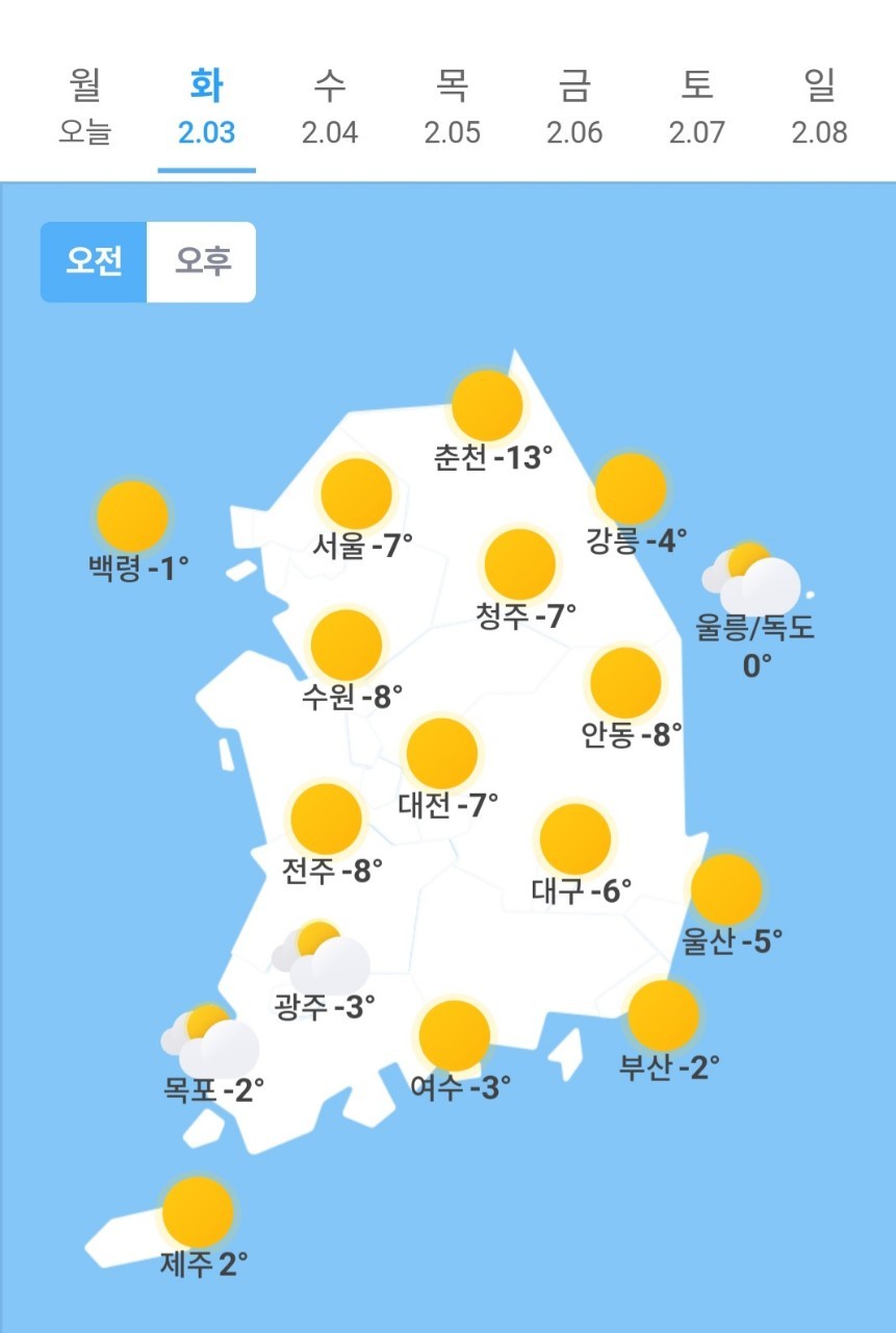 ✫수원(☀️)➠(☀️) -8℃ ~ 5℃