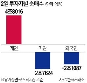 ◇외국인·기관 '패닉셀'…개미 폭풍방어에도 4949 마감