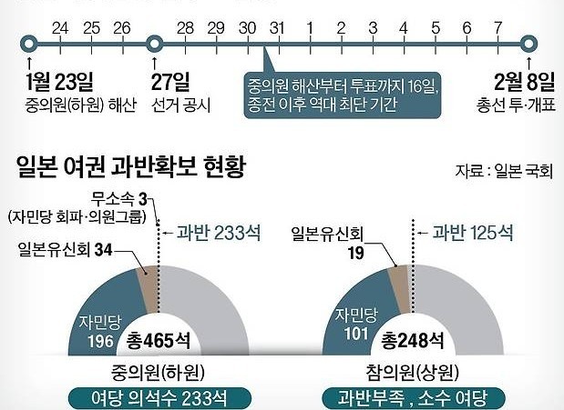 연립여당인 ‘일본유신회’ 의석 더할 경우 헌법 개정도 가능한 중의원 3분의 2 이상을 차지할 수 있다는 전망도 나와.(문화)