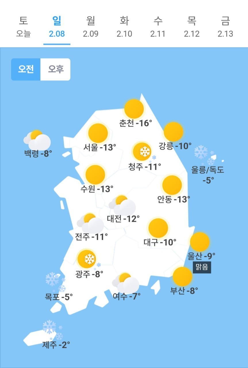 ✫청주(☃️)➠(☀️) -11℃ ~ -2℃