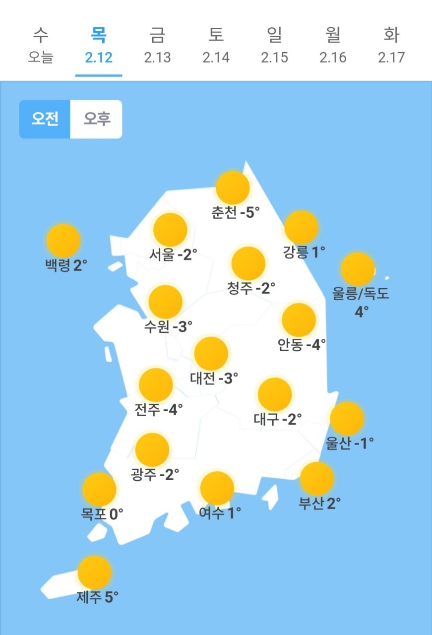 ✫청주(☀️)➠(☀️) -2℃ ~ 6℃