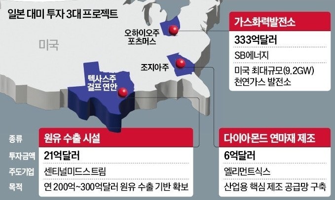 3. 도널드 트럼프 미국 대통령이 일본의 첫번째 대미 투자 프로젝트로 3건이 선정됐다고 발표했습니다.