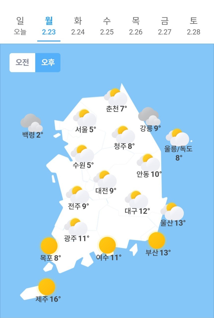 ✫서울(☀️)➠(⛅) -2℃ ~ 5℃