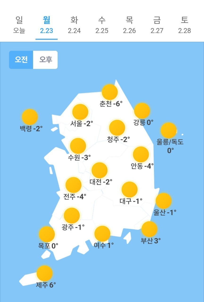 ✫춘천(☀️)➠(⛅) -6℃ ~ 7℃