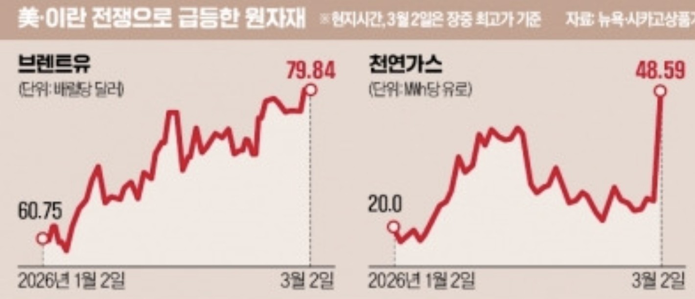 원유 운송 요충지인 호르무즈 해협이 봉쇄되고 카타르 액화천연가스 생산에 차질이 빚어졌기 때문입니다.