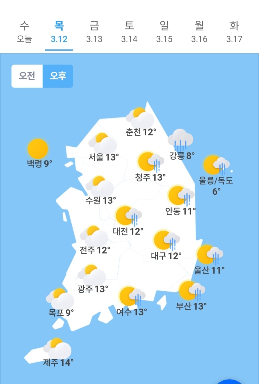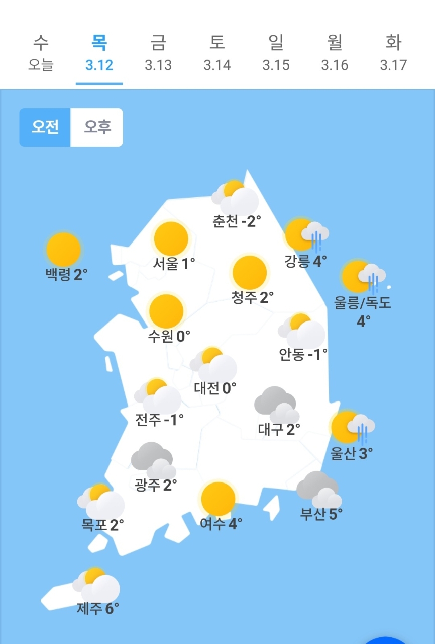 ✫수원(☀️)➠(⛅) 0℃ ~ 13℃