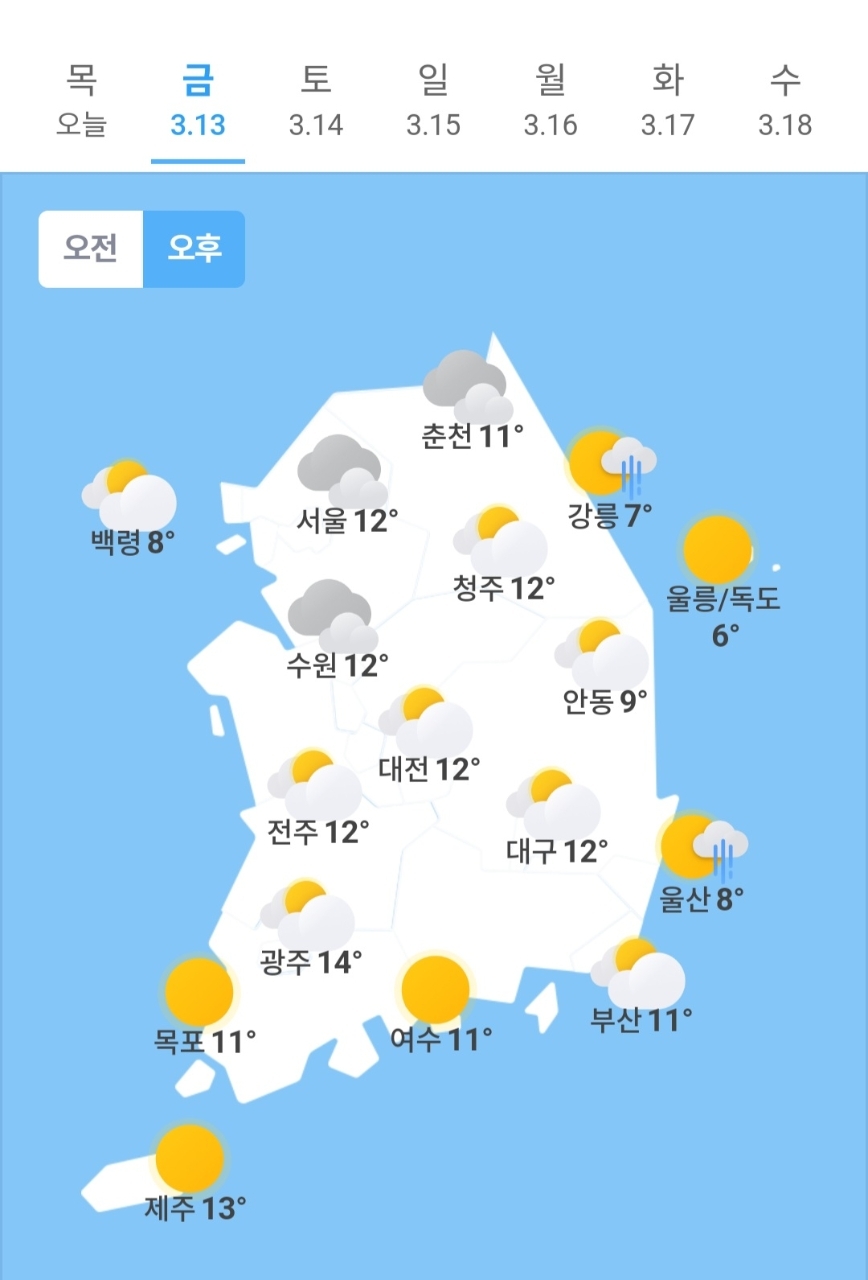 ✫제주(⛅)➠(☀️) 7℃ ~ 12℃