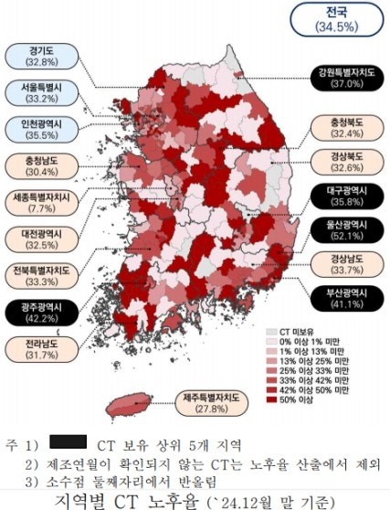 CT 10대 중 3대 이상이 10년이 넘은 장비.