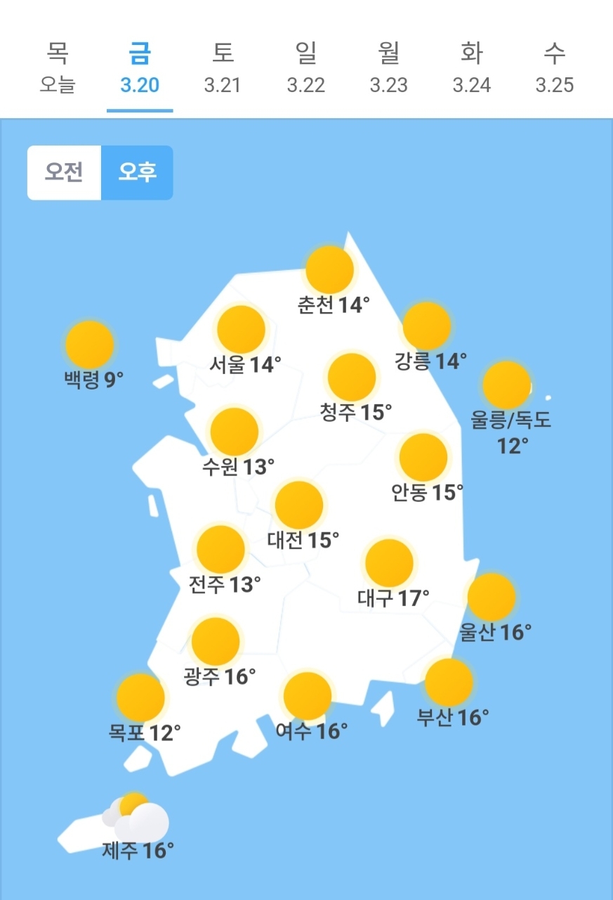 ✫춘천(☀️)➠(☀️) -3℃ ~14℃