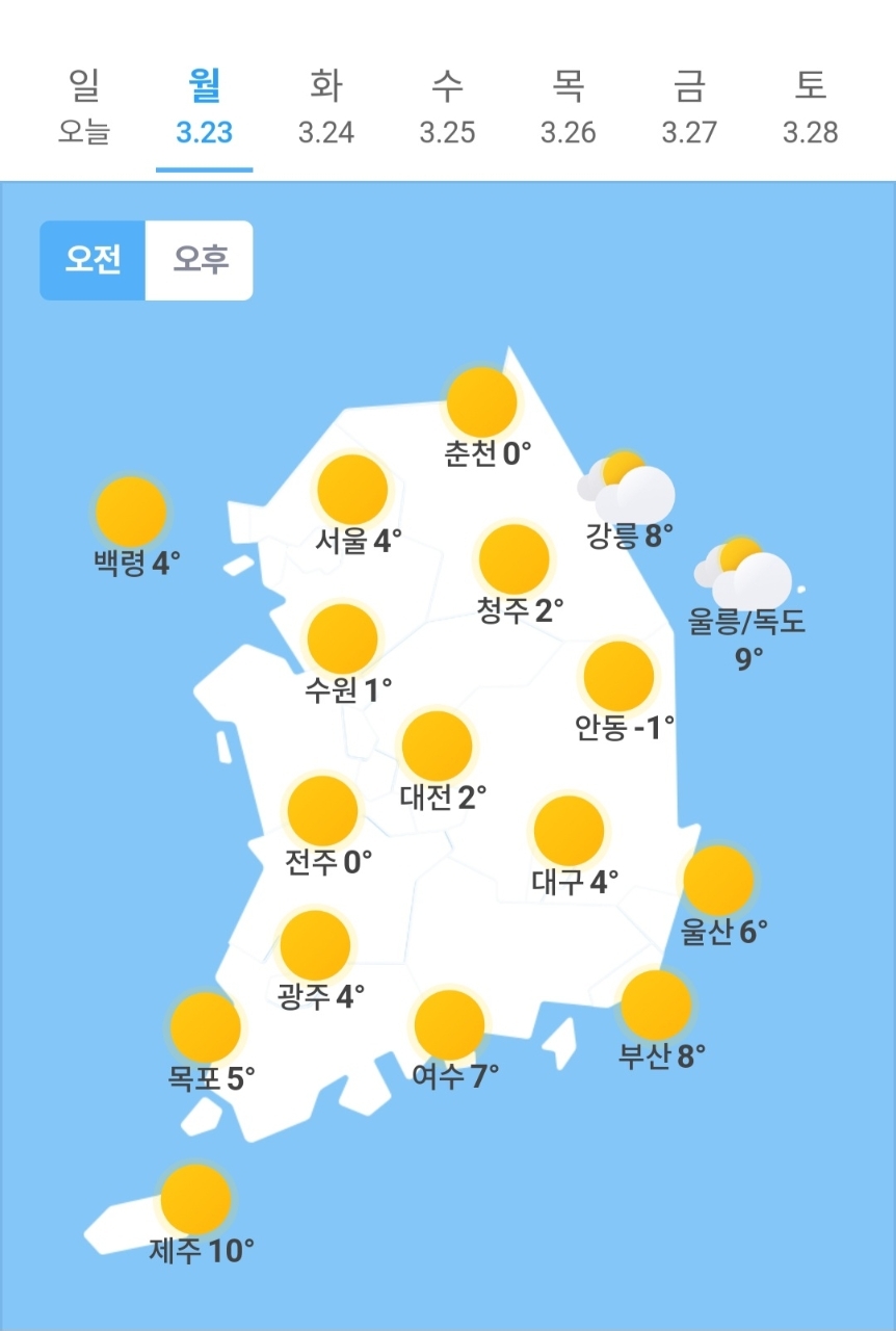 ✫춘천(☀️)➠(☀️) 0℃ ~18℃