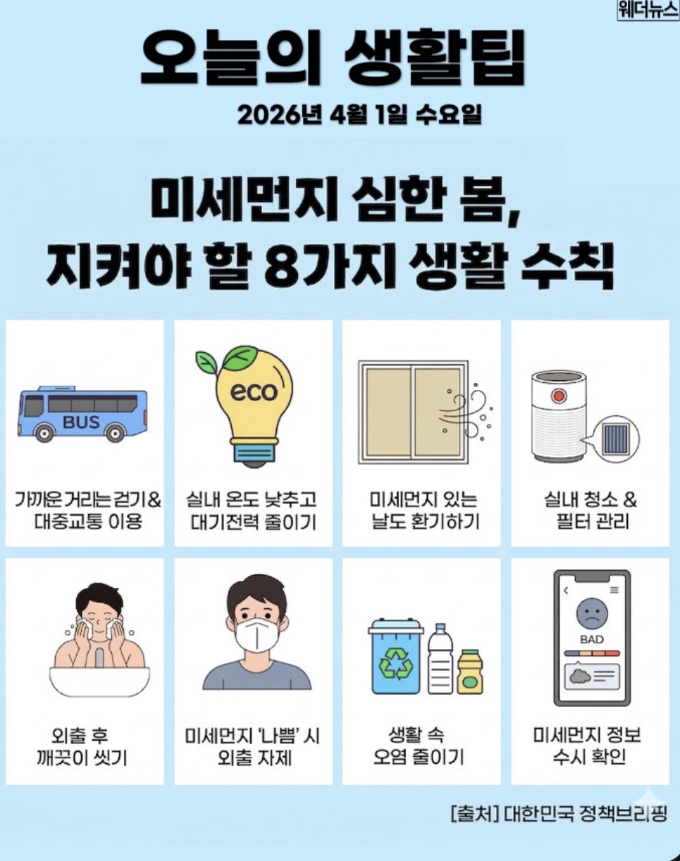 아울러 오늘과 내일, 모레에 걸쳐 내륙의 큰 일교차와 안개, 곳곳의 비와 천둥·번개, 해상의 강풍과 높은 물결이 동시에 나타나는 만큼, 출퇴근길 교통 안전, 농작물 관리, 해상 조업과 여객선 운항, 해안가 여가 활동 시 기상 상황을 수시로 확인하고 안전 수칙을 지키는 것이 필요하겠습니다.