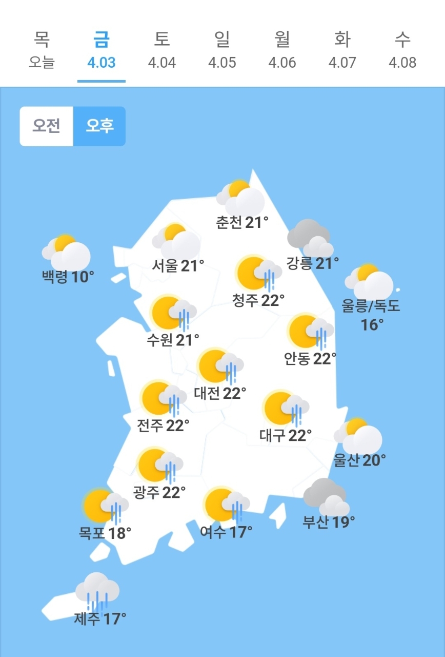 ✫청주(☀️)➠(🌦) 7℃ ~ 22℃