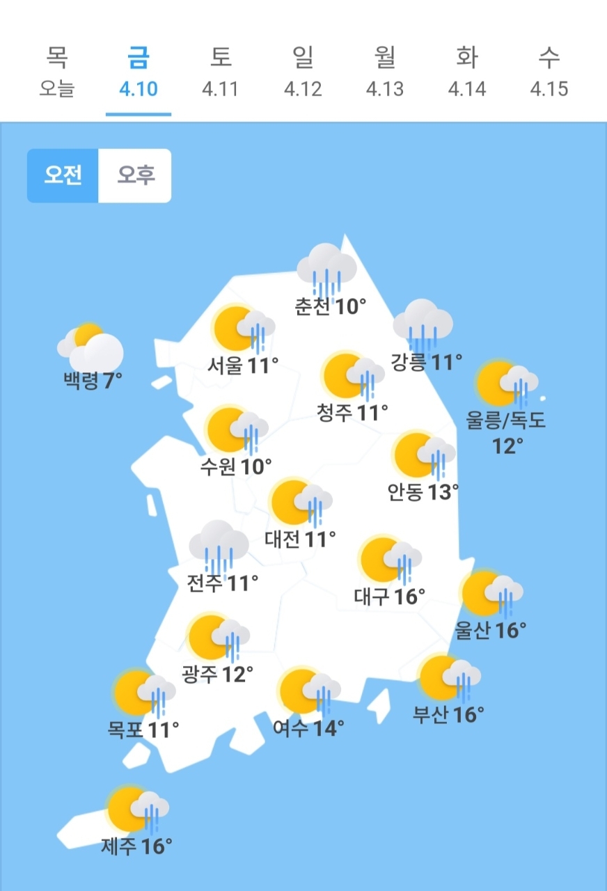 ✫청주(🌦)➠(☀️) 11℃ ~ 16℃