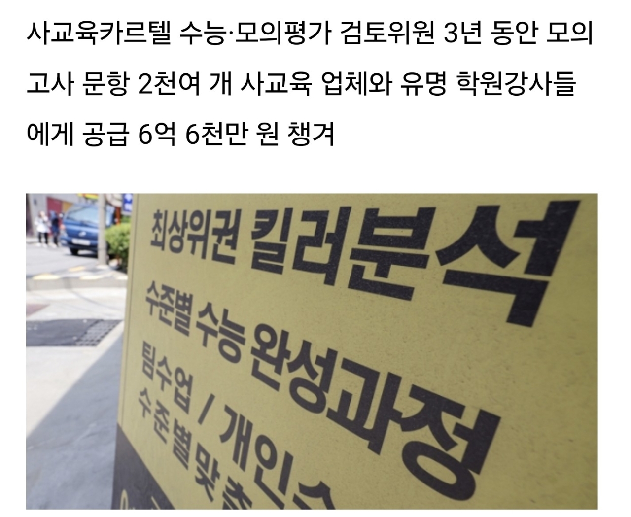 5. 1타 강사 영어 지문 수능에 그대로 등장하면서 공교육 종사자와 사교육업체 간 ‘사교육 카르텔’ 의혹이 수면 위로 드러났습니다.