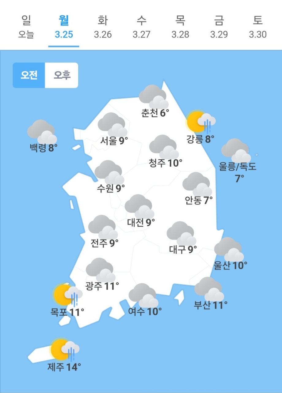 오늘의 날씨 🌞☔️☃️, 2024년 3월 25일 월요일