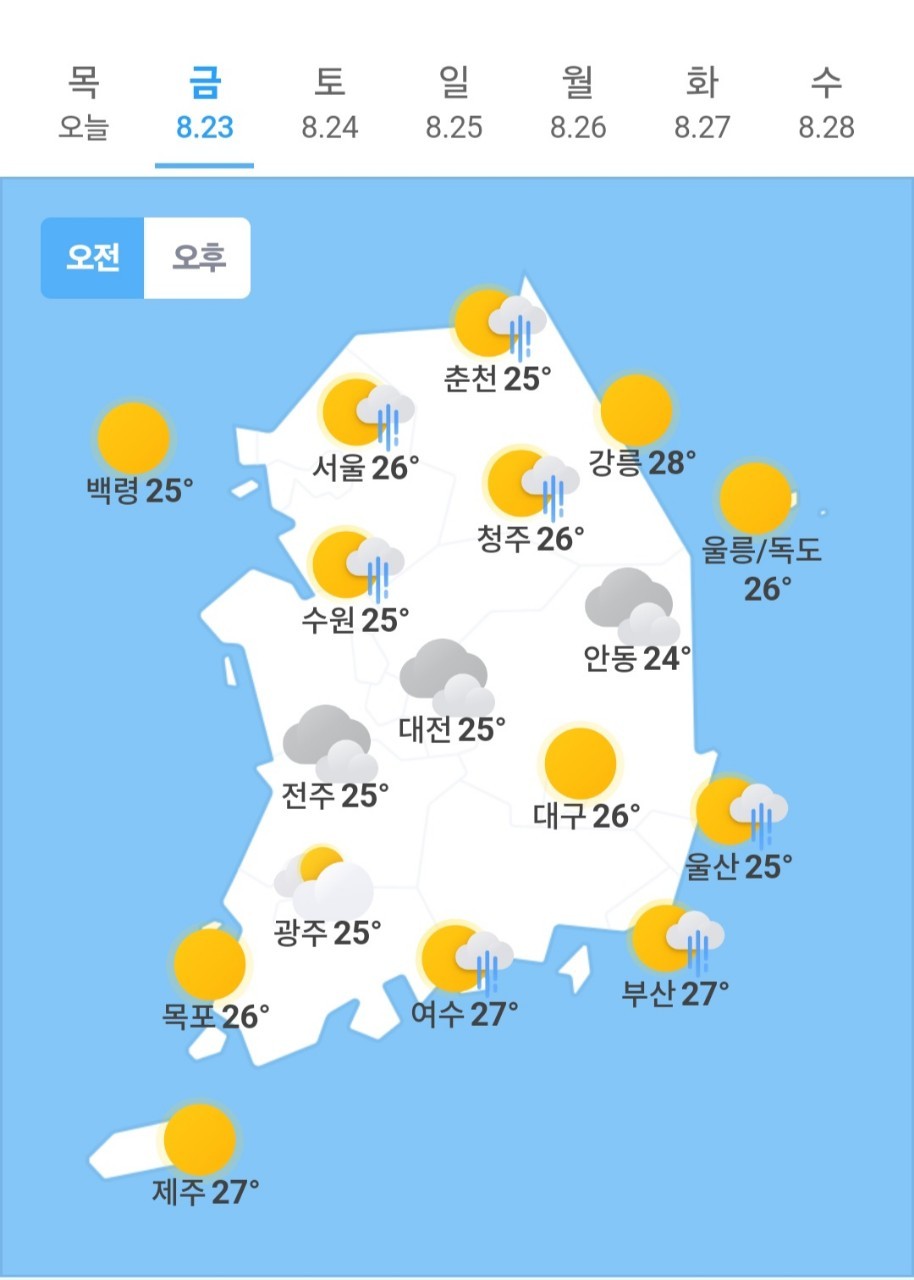 오늘의🌞☔️☃️ 날씨, 2024년 8월 23일 금요일